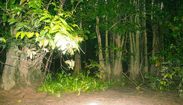's Nachts begeven vele nachtdieren zich in de open plekken; duidelijk zichtbaar van de boot als je geluk hebt. De schippers gebruiken grote lantaarns om de dieren te vinden, wat niet zo moeilijk is voor hen omdat het licht van de lantaarns de ogen van de meeste dieren reflecteren. De volgende dag zagen we een pygmy of Borneodwergolifanten familie die uit meer dan 70 dieren bestond, die langs de rivieroever wandelden. We zagen ook een moeder pygmy olifant en haar jong de rivier oversteken en stonden oog in oog met een orang-oetan met haar jong; een indrukwekkende ervaring. We spotten ook verschillende types van wilde katten, meerdere families neusapen (Orang Belanda), enkele slangen en vele verscheidene soorten vogels en enkele erg mooie insecten.