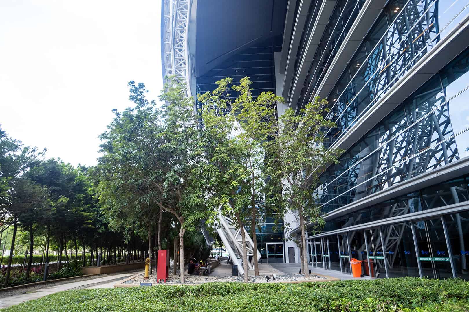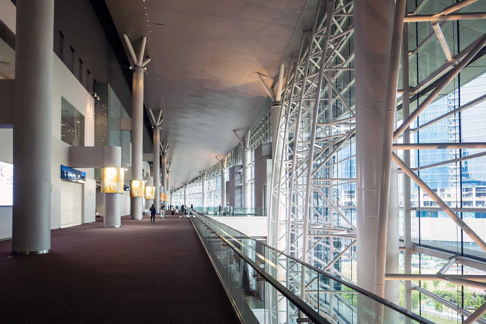 Wie aan congrescentra denkt, ziet al snel een blok beton voor zich. MITEC bewijst dat het anders kan. Het ontwerp is geïnspireerd op iets simpels maar betekenisvols: het zaadje van de rubberplant. Daarmee verwijzen de architecten naar de rubberindustrie die ooit de ruggengraat vormde van de Maleisische economie. Van buiten herken je meteen de vloeiende, elliptische vormen, die bijna futuristisch aandoen. De gevel is versierd met een patroon dat verwijst naar songket, de traditionele handgeweven stof die vaak met goud- of zilverdraad wordt gemaakt. Het resultaat is een gebouw dat tegelijk modern en cultureel geworteld aanvoelt.