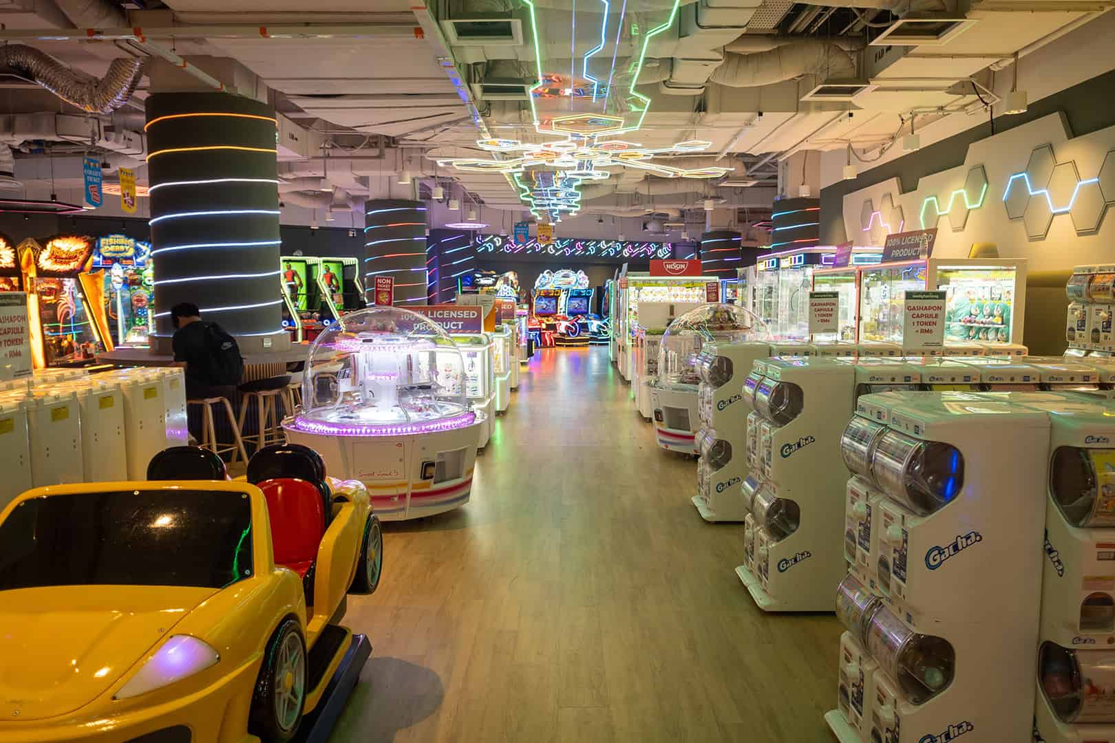 In vrijwel elke stad vind je meerdere grote winkelcentra. Deze malls zijn meer dan winkelcentra, ze vormen een sociaal middelpunt voor families en een bezoek is vaak meer een dagje uit. Daardoor zijn deze winkelcentra vaak uitgerust met kindvriendelijke attracties, alles om je er zo lang mogelijk te vermaken. Vrijwel elke mall heeft een bioscoop en vaak ook een grote bowlingbaan. Soms heb je een Escape Room, Lasergamen of een VR-hal. Ook hebben de meeste winkelcentra een amusementshal met videogames of ander vermaak. Berjaya Times Square in Kuala Lumpur springt eruit, met een bowlingbaan van 48 banen en een groot indoor pretpark. Het Berjaya Times Square Theme Park is zelfs wereldwijd bekend en heeft onder andere een indoor achtbaan met looping die langs de verschillende verdiepingen raast.