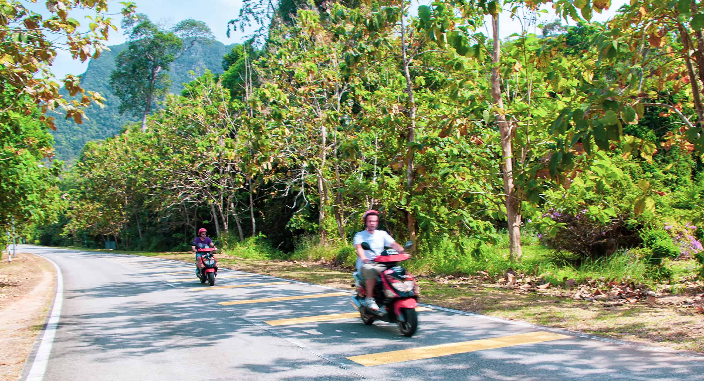 De binnenlanden van eilanden als Penang, Pangkor of Langkawi zijn allemaal goed geasfalteerd. Het komt zelden voor dat je op een zandweggetje terecht komt en we raden aan om hier zoveel mogelijk van weg te blijven. Verder heb je overal benzinepompen waar je makkelijk en goedkoop tankt. Vaak hoef je zelf niks te doen en kun je terecht bij de speciale pomp waar een mannetje de scooter vol tankt (en waar je cash ter plekke betaalt).